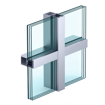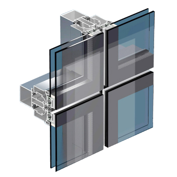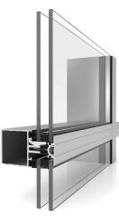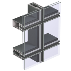 Полуструктурное остекление. Соединяет прочность стоечно-ригельного остекления с изысканной эстетикой структурного. Стекло или стеклопакет крепятся к опорному профилю узкими прижимными штапиками, минимально закрывающими поверхность стекла. В отличие от полностью структурного метода, этот подход позволяет использовать крупные стеклопакеты и включает открывающиеся элементы.